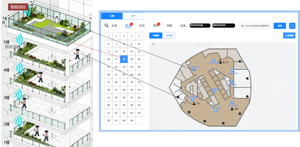 在多层大厦与高层楼宇管理中,人员实时位置管理已成为安保体系的关键能力。传统巡检巡更系统只能“打卡留痕”,却无法回答一个最核心的问题:此刻,安防人员具体在哪一层、哪一个区域?