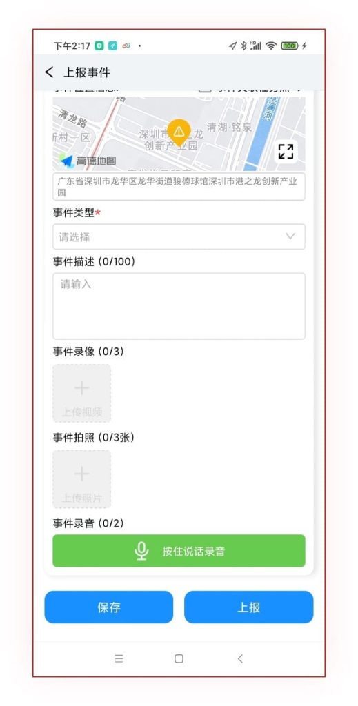 发现渗水、异味、设施损坏,可通过移动 APP 直接上报,位置自动关联。