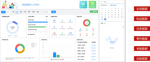巡检、事件、调度、工单、考勤数据统一汇总,形成完整安防数据资产。