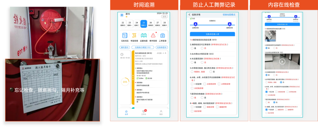针对消防器材、消防通道、消防控制室等关键区域,巡循将可建立标准化消防检查任务,自动记录每一次检查的时间、人员与结果,避免随意画勾、事后补填等问题,确保消防检查可追溯、有依据