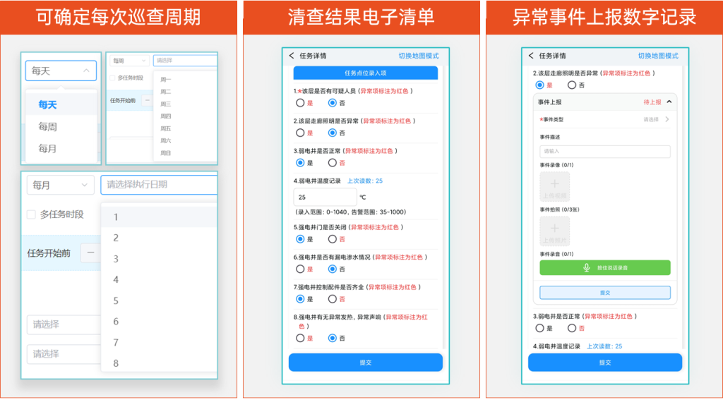 在任务执行过程中发现异常,可即时上报形成事件或工单,系统自动跟踪处理进度,确保隐患有发现、有处置、有结果。
