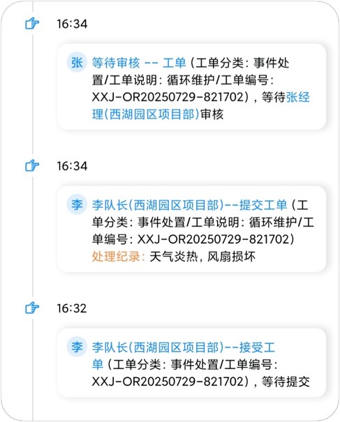 管理员可针对隐患事件创建工单,指派人员处理,经审批结果后实现闭环管理。